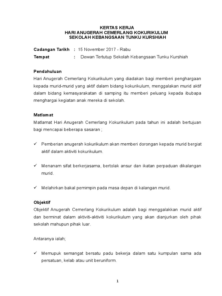 . Setiausaha Kokurikulum SK Long Tukon 1. Kertas kerja hari anugerah kokurikulum Thursday June 2 2022 Edit. Kertas Kerja Hari Anugerah By Zalina Din Issuu Kertas Kerja.
